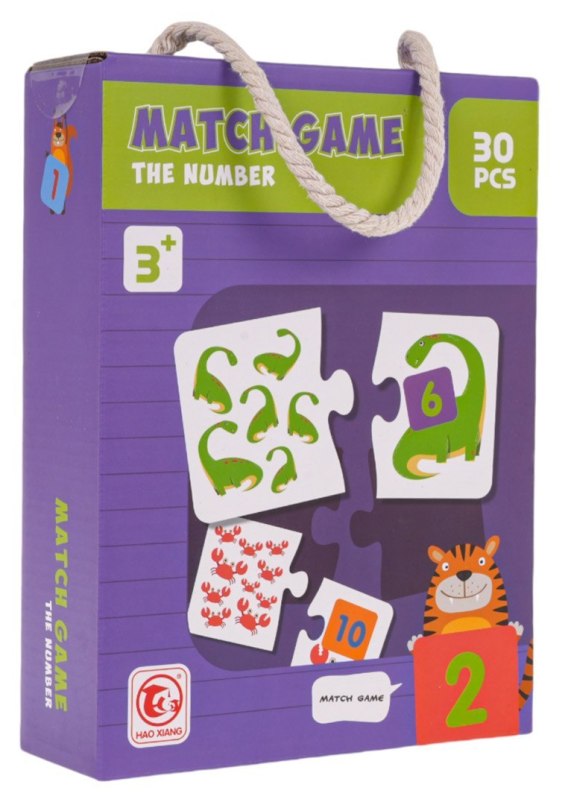 Gra edukacyjna, matematyczna Liczby dla dzieci od 3-go roku życia. Gra składa się z 30 puzzli, dzięki którym dziecko uczy się liczyć i dopasowywać kształty. Gra trenuje również koordynację ręka-oko, rozwija spostrzegawczość i koncentrację. Z jednej strony układanki, mamy rysunek zwierzątka z cyferką w zakresie 1-15. Z drugiej strony dziecko musi przypasować puzzel z odpowiednią ilością zwierzątek, pasujących do zwierzątka z prawej strony i cyferki.