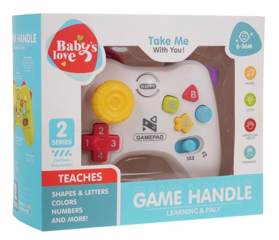 Interaktywny pad z efektami dźwięku i światła dla najmłodszych od 6-go miesiąca życia. Pad wykonany został z najlepszej jakości plastiku i jest w pełni bezpieczny dla maluszka. Pod każdym przyciskiem, kryją się migoczące światełka i dźwięki. Pad może działać w dwóch trybach: muzyczno-dźwiękowym lub edukacyjnym. W trybie edukacyjnym dziecko poznaje literki, cyferki, kształty i kolory. Na górze pada, znajdują się dwa elementy do kręcenia, które przesuwając się, wydają dźwięki terkotania. Zabawka zasilana jest bateriami typu 3 x 1,5 V AAA, których brak w zestawie.