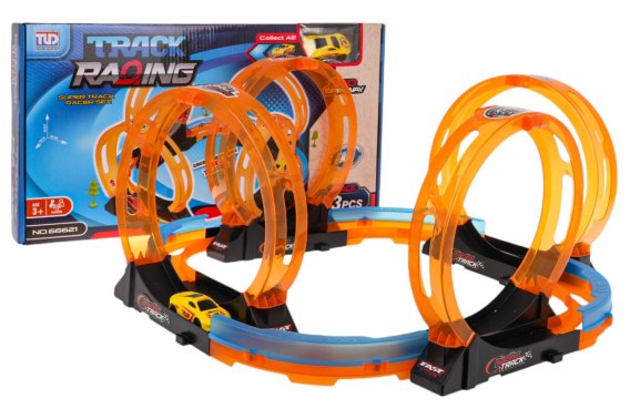 Tor wyścigowy z pętlami dla dzieci od 3-go roku życia. Tor wykonano z najlepszej jakości plastiku w żywych kolorach. Na zestaw składa się 23 elementy do samodzielnego montażu. Tor posiada odcinki proste do rozpędzenia pojazdu, 4 pętlę 360 stopni pojazd. Pojazd napędzany jest napędem pull back. Wystarczy delikatnie nacisnąć pojazd do tyłu, by przejechał tor z pełną mocą.
