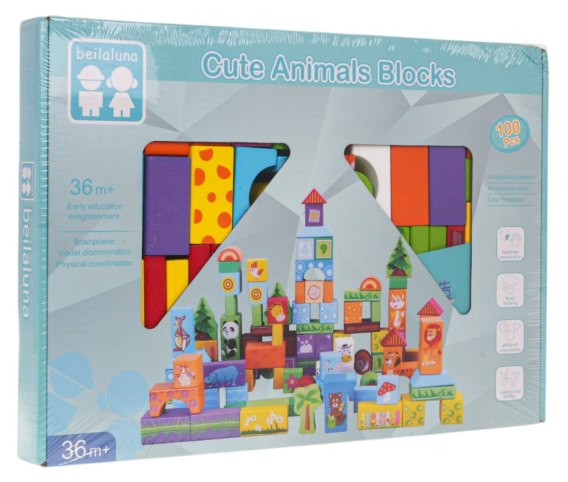 Drewniany zestaw, wytrzymałych klocków to propozycja dla dzieci od 3-go roku życia. Klocki wykonane zostały z drewna wysokiej jakości, pomalowane bezpieczną farbą, nie posiadają ostrych krawędzi, są gładkie. Będą służyć dziecku, przez wiele lat. Klocuszki mają różne kształty i kolory, co zachęca maluszka do budowy domów, wież, pojazdów itp. Do zestawu dołączona jest obrazkowa instrukcja z przykładami modeli do ułożenia. Większość z klocuszków jest ozdobiona rysunkami zwierzątek, literkami lub kształtami. Drewniane klocuszki to zabawka znana i lubiana od pokoleń. Układać klocki lubią zarówno chłopcy jak i dziewczynki. Przez zabawę dziecko trenuje swoją kreatywność, rozwija wyobraźnię przestrzenną, zręczność, cierpliwość, ćwiczy koordynację ręka-oko.