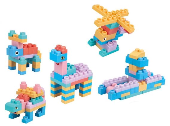 Zestaw kolorowych miękkich klocków dla dzieci od 3-go roku życia. Zestaw wykonano  z bezpiecznego dla dzieci i środowiska materiału PVC. Klocki są lekkie i nie posiadają ostrych zakończeń. Bardzo łatwo je utrzymać w czystości, po wyparzeniu, nie tracą kolorów. Klocuszki możemy dowolnie wyginać, a po wygięciu wracają do swojego poprzedniego kształtu.